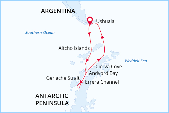 This is expedition cruising at its most authentic. Our route and exploration opportunities in Antarctica are heavily dependent on weather and ice conditions. Our experienced captain and expedition leader decide the itinerary and continually adjust plans as conditions and opportunities warrant. We take advantage of long daylight hours to exploit every opportunity to experience excellent wildlife viewing, amazing scenery, and excursions via Zodiac.