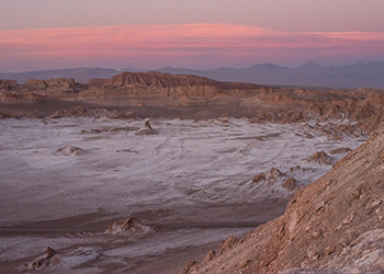 We arrive at Calama Airport and go straight to San Pedro de Atacama, driving past the impressive rock formations of the Cordillera de la Sal (Salt Mountains). Once in San Pedro, we receive a briefing over lunch about the upcoming days and in the afternoon we do our first hike in the vast amazing Valle de la Luna. We walk over sand dunes until we reach the viewpoint from where we will witness one of the world's most beautiful sunsets, intensified by the warm colors throughout the Valley. We come back to town and stay overnight in San Pedro.