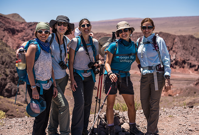 Today is the most physically challenging day of the trek, as we walk towards Machuca Village. The trail continues alongside small streams in narrow, beautiful valleys inhabited by indigenous locals and their llama herds. We continue climbing up steep desert canyons, gaining altitude, until we reach the wetlands of Machuca, full of local wildlife. From here we have an amazing view of Licancabur Volcano, the sacred mountain of the Atacameño people. At this point, we are at 4,000 m (13,000 ft) above sea level, and we spend the evening relaxing and acclimatizing in our campsite next to a big 'bofedal' - wetlands where llamas graze.