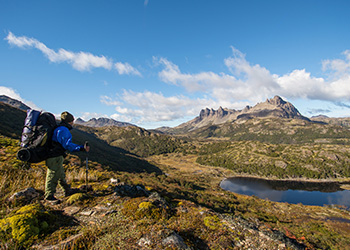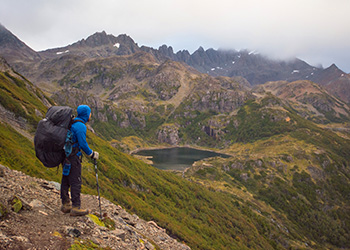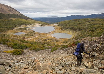 Cross the Dientes de Navarino Cordillera, while enjoying the breathtaking views of Nassau Bay and Wollaston islands, both part of Cape Horn. After passing by several lakes, climb the Ventarron path (696 mts) for an incredible view of the Dientes de Navarino and Mount Codrington. We will continue to enjoy the landscape while on the way to Laguna Martillo, our second camping site.